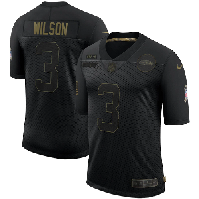 Men's Seattle Seahawks #3 Russell Wilson 2020 Black Salute To Service Limited Stitched Jersey