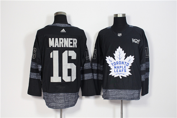 Men's Adidas Toronto Maple Leafs #16 Mitchell Marner Black 1917-2017 100th Anniversary Stitched NHL Jersey