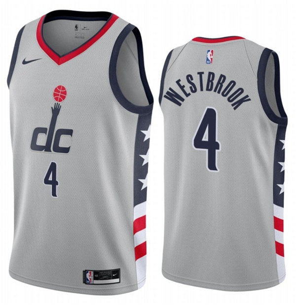 Men's Washington Wizards #4 Russell Westbrook Grey City Edition Stitched Jersey