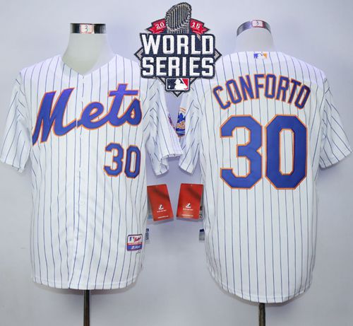 Mets #30 Michael Conforto White(Blue Strip) Cool Base W/2015 World Series Patch Stitched MLB Jersey