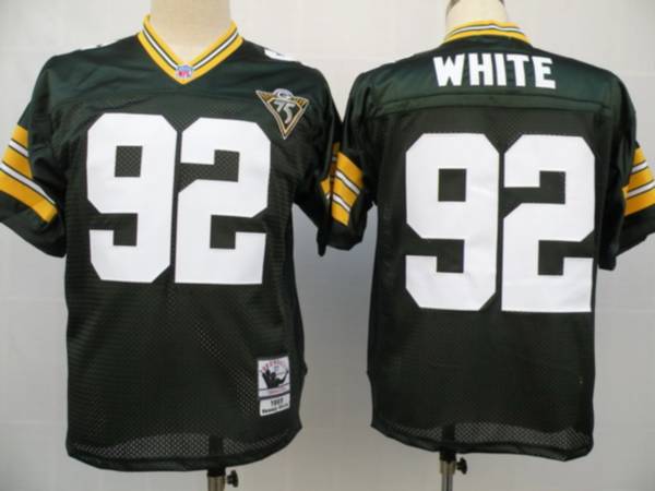 Mitchell & Ness Packers #92 Reggie White White With 75th Patch Stitched Throwback NFL Jersey