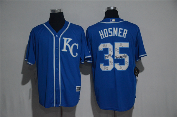 Men's Kansas City Royals #35 Eric Hosmer Blue Team Logo Print Cool Base Stitched MLB Jersey