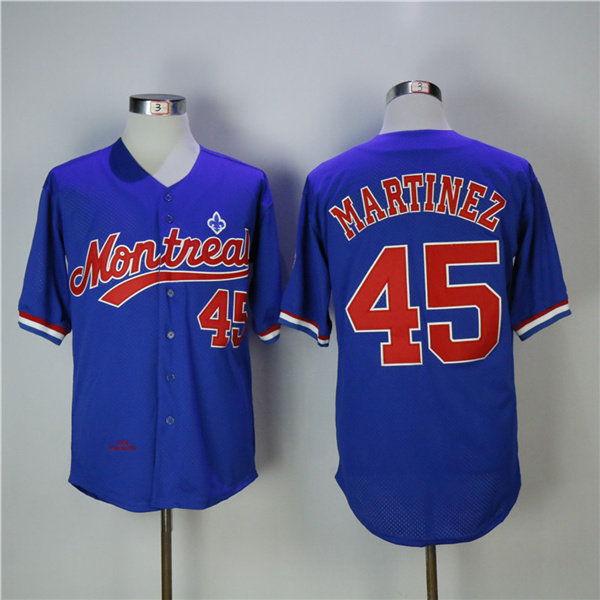 Men's Montreal Expos #45 Pedro Martinez Blue Cooperstown Collection Mesh Batting Practice Stitched MLB Jersey