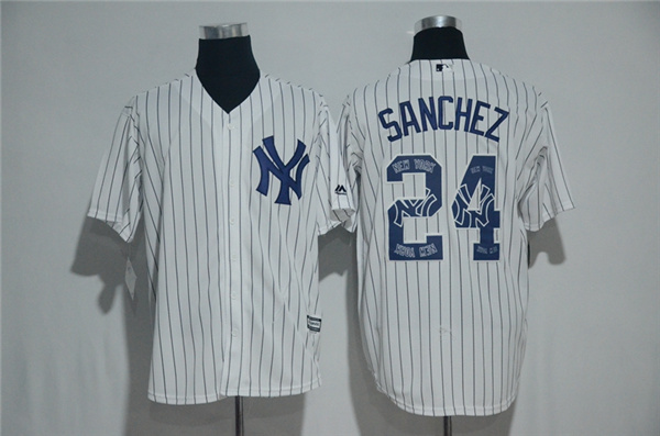 Men's New York Yankees #24 Gary Sanchez White Team Logo Print Cool Base Stitched MLB Jersey