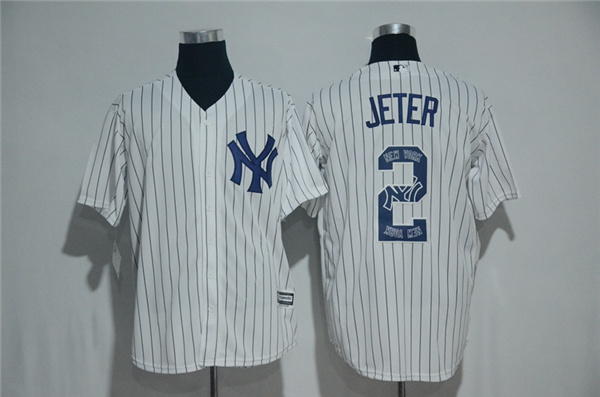 Men's New York Yankees #2 Derek Jeter White Team Logo Print Cool Base Stitched MLB Jersey