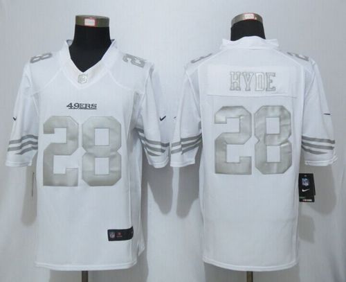 Nike 49ers #28 Carlos Hyde White Men's Stitched NFL Limited Platinum Jersey