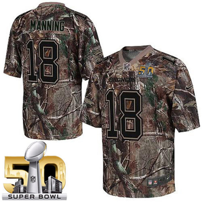 Nike Broncos #18 Peyton Manning Camo Super Bowl 50 Men's Stitched NFL Realtree Elite Jersey