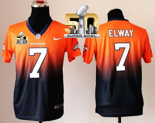 Nike Broncos #7 John Elway Orange/Blue Super Bowl 50 Youth Stitched NFL Elite Fadeaway Fashion Jersey