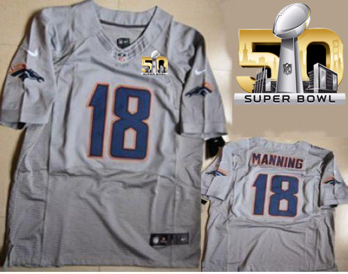 Nike Broncos #18 Peyton Manning New Grey Shadow Super Bowl 50 Men's Stitched NFL Elite Jersey
