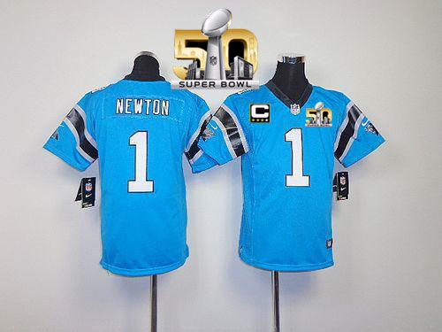 Nike Panthers #1 Cam Newton Blue Alternate With C Patch Super Bowl 50 Youth Stitched NFL Elite Jersey