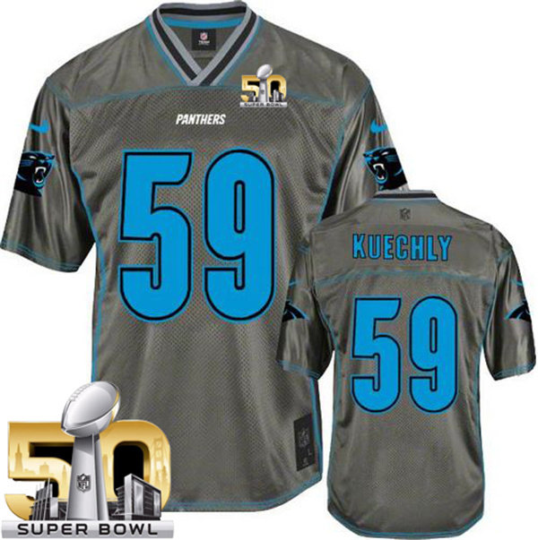 Nike Panthers #59 Luke Kuechly Grey Super Bowl 50 Youth Stitched NFL Elite Vapor Jersey