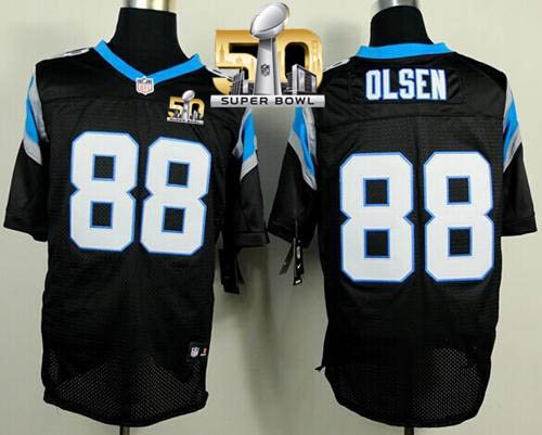 Nike Panthers #88 Greg Olsen Black Team Color Super Bowl 50 Men's Stitched NFL Elite Jersey