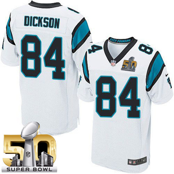 Nike Panthers #84 Ed Dickson White Super Bowl 50 Men's Stitched NFL Elite Jersey