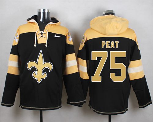 Nike Saints #75 Andrus Peat Black Player Pullover NFL Hoodie
