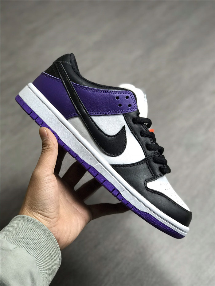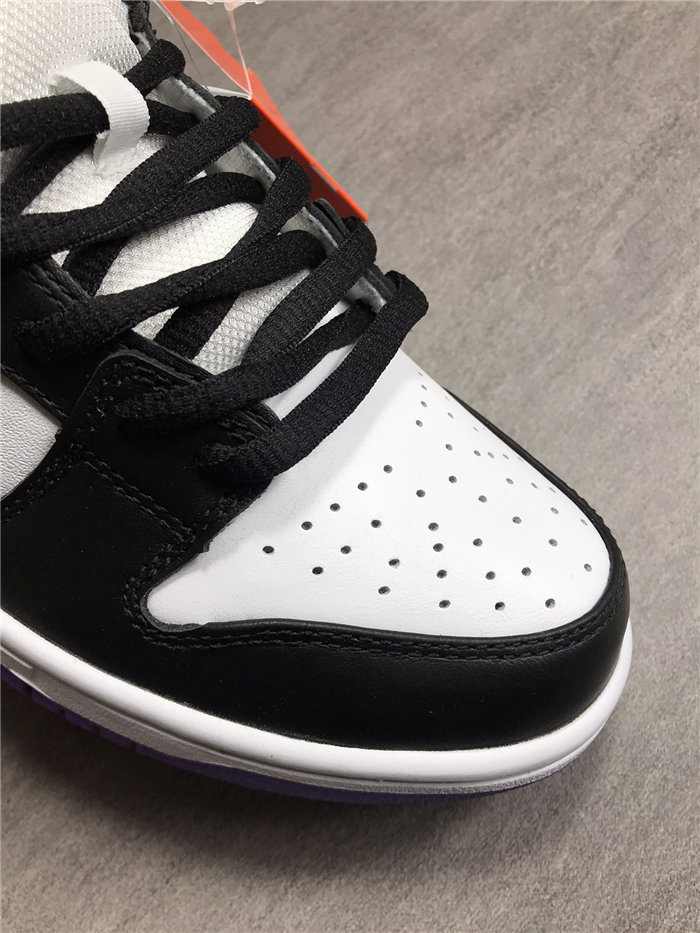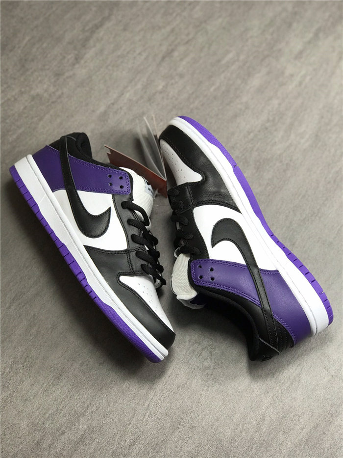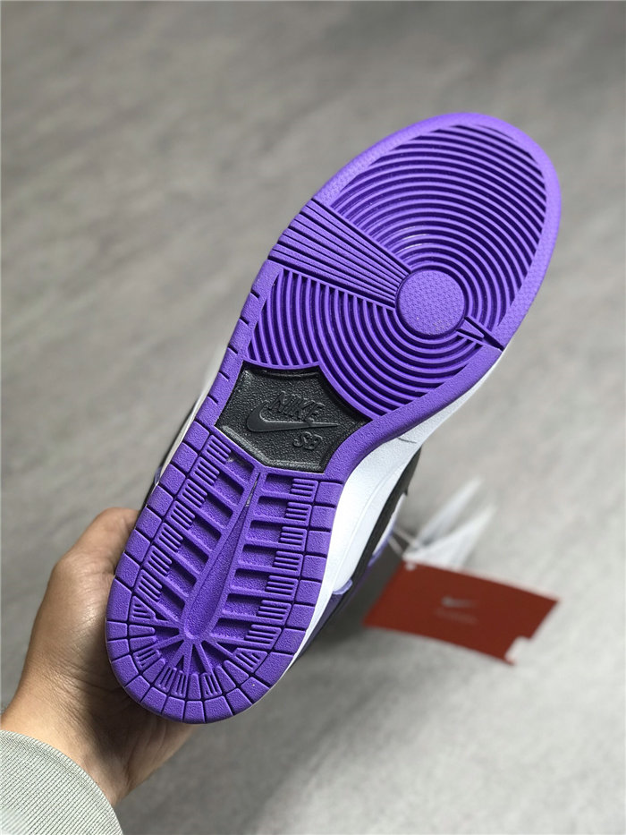 The low-top makes use of a white leather upper with contrasting black overlays on the forefoot, eyestay and collar. A heel overlay in Court Purple is matched by the rubber outsole, featuring a grippy traction pattern originally designed for the hardwood.