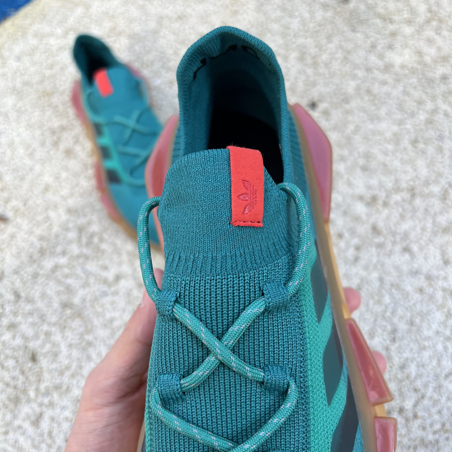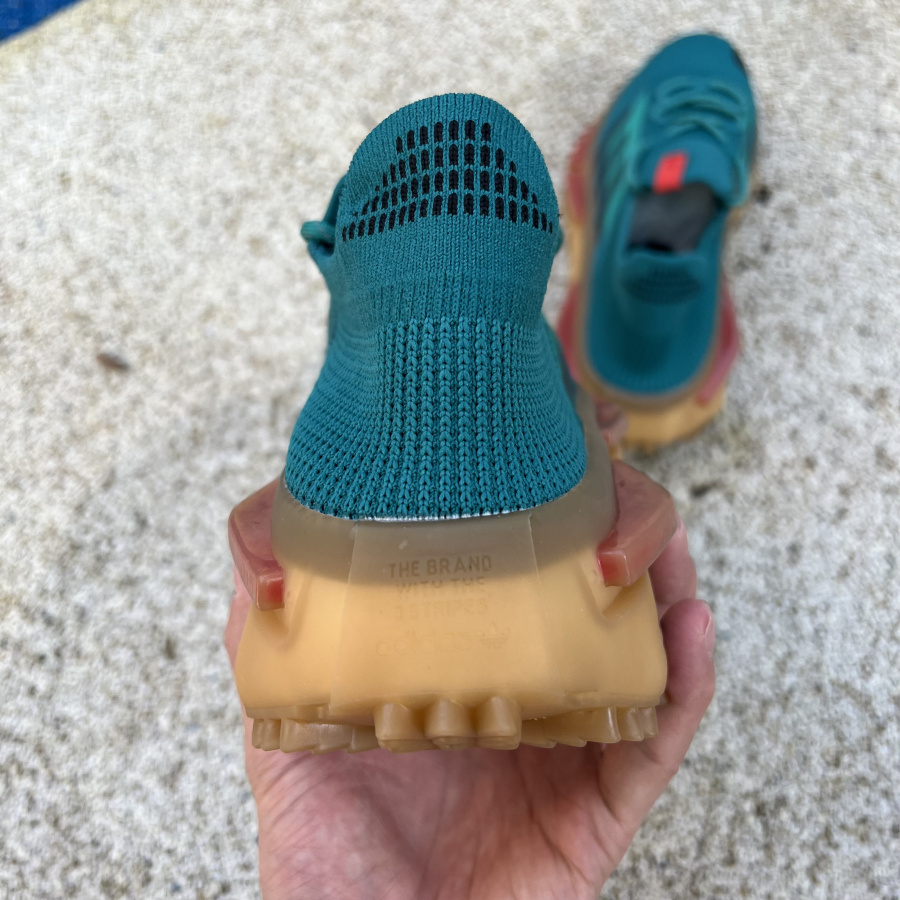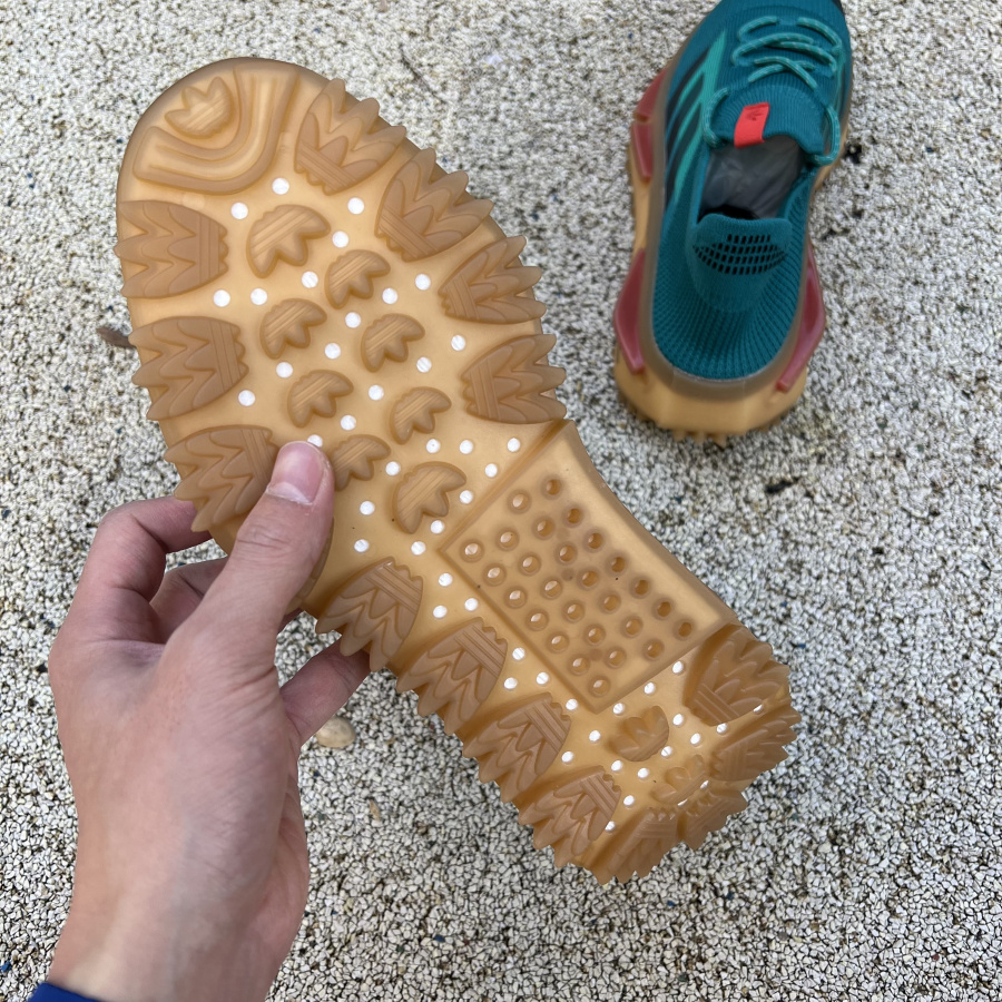 The translucent outsole looks a bit bulky, wrapped in a new cushioning material, I don't know how the foot feels. The clover logo pattern on the sole is very unique.