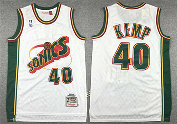 Men's Oklahoma City Thunder #40 Shawn Kemp White SuperSonics Stitched NBA Jersey