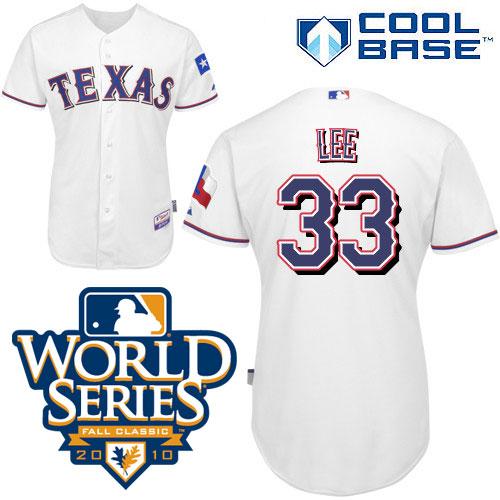 Rangers #33 Cliff Lee White Cool Base w/2010 World Series Patch Stitched MLB Jersey