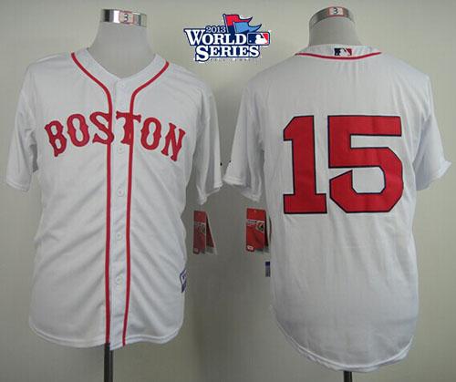 Red Sox #15 Dustin Pedroia White Cool Base 2013 World Series Patch Stitched MLB Jersey