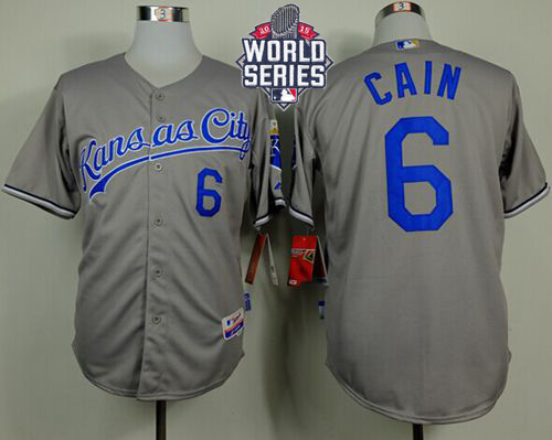 Royals #6 Lorenzo Cain Grey Cool Base W/2015 World Series Patch Stitched MLB Jersey