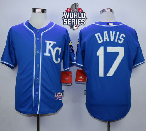 Royals #17 Wade Davis Blue Alternate 2 Cool Base W/2015 World Series Patch Stitched MLB Jersey
