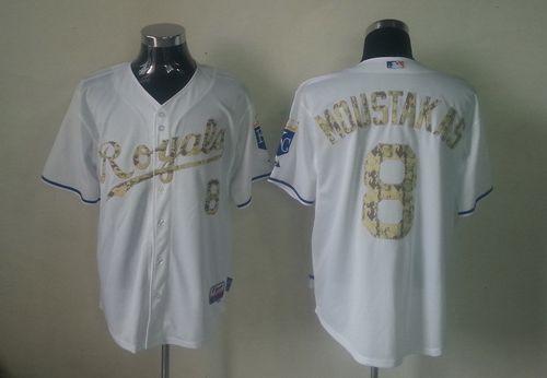 Royals #8 Mike Moustakas White USMC Cool Base Stitched MLB Jersey