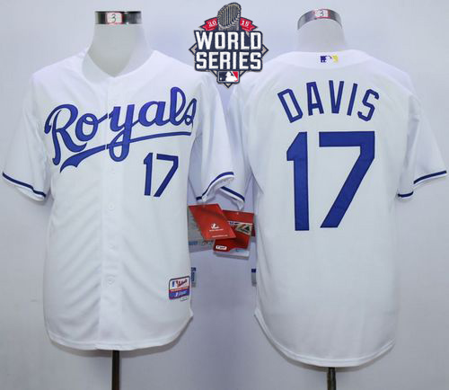 Royals #17 Wade Davis White Cool Base W/2015 World Series Patch Stitched MLB Jersey