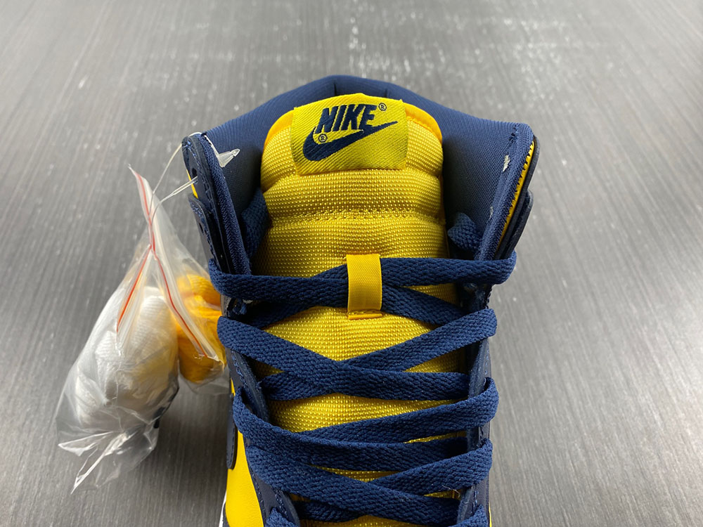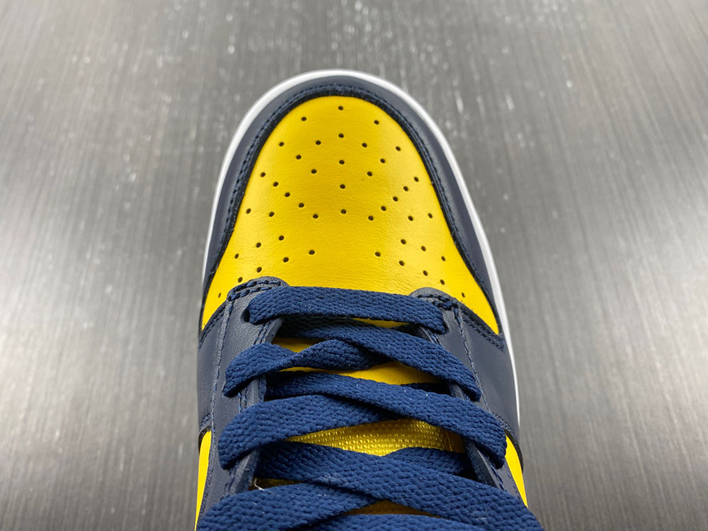The frame is navy blue with bright yellow uppers. The overall color scheme OG temperament is full, it is estimated that the foot effect will be very good.