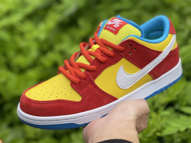 The overall color matching of this pair of shoes is presented in bright and eye-catching red, yellow and blue contrasting colors, which is exactly like the image of Bart Simpson, the protagonist of "The Simpsons". The red frame part of the vamp is made of suede material, and the texture performance is quite good. The rest of the yellow part is made of lychee skin, which highlights the visual layering.