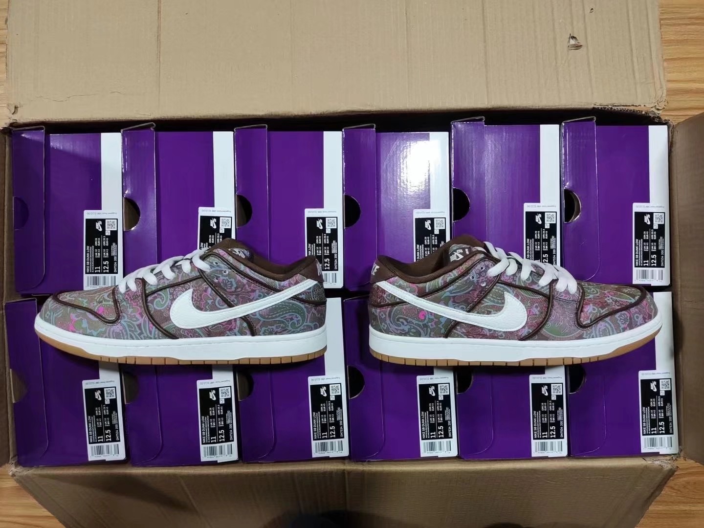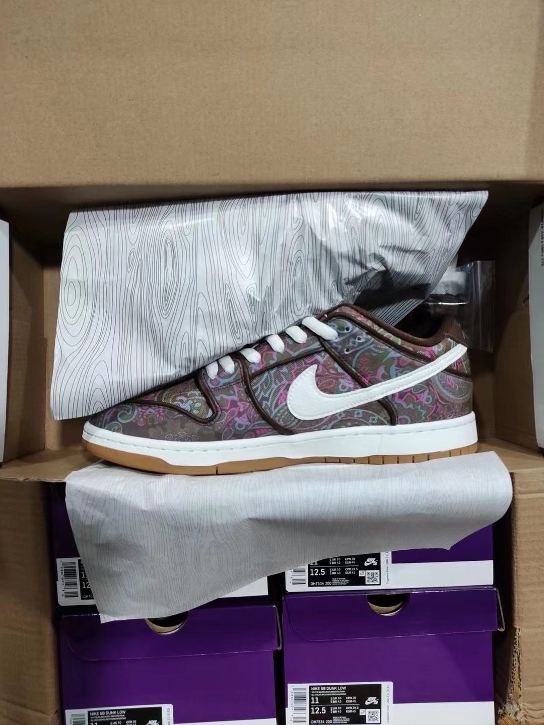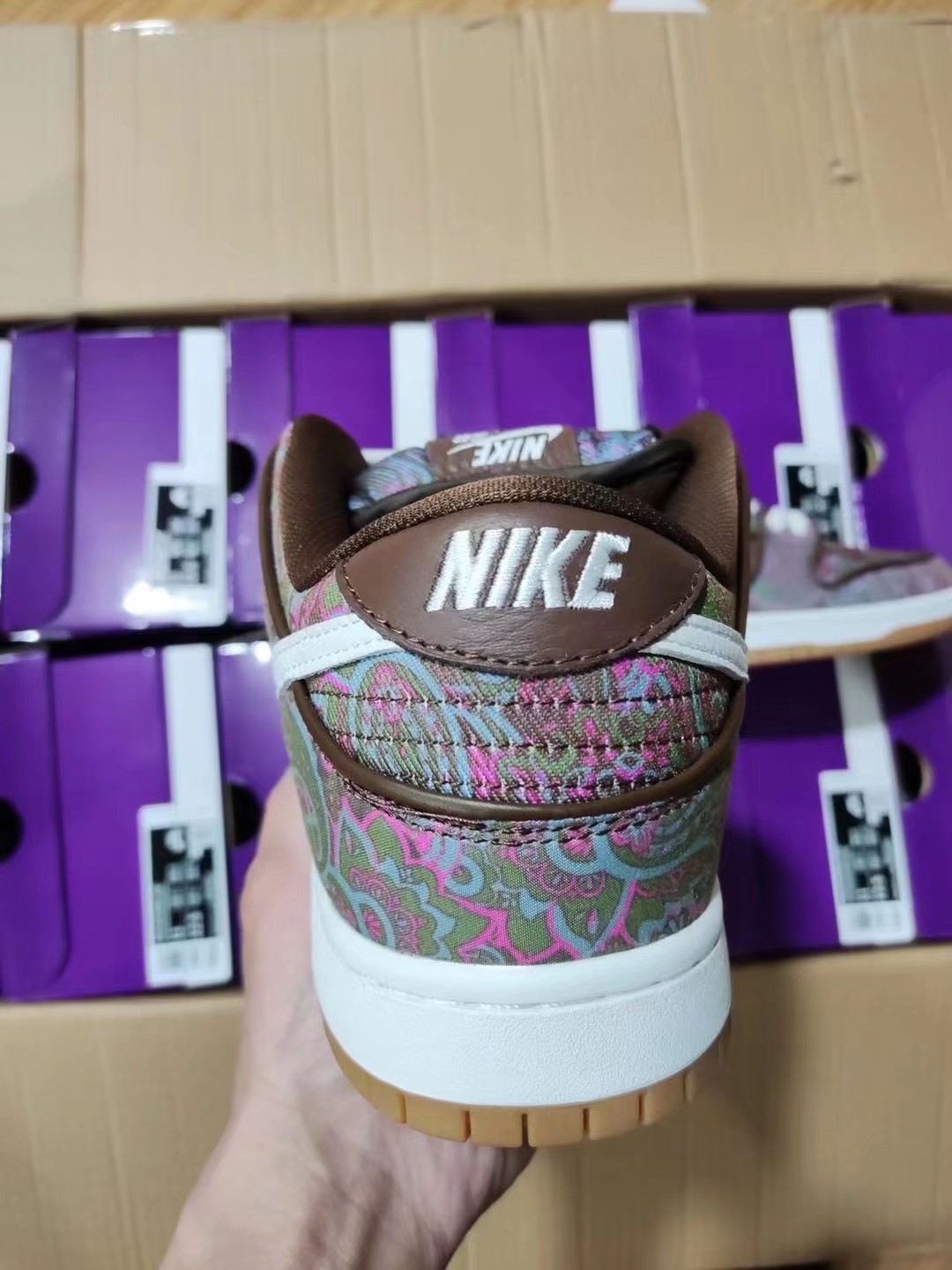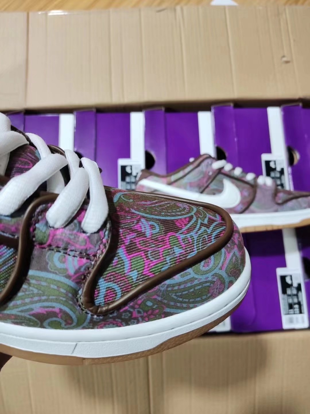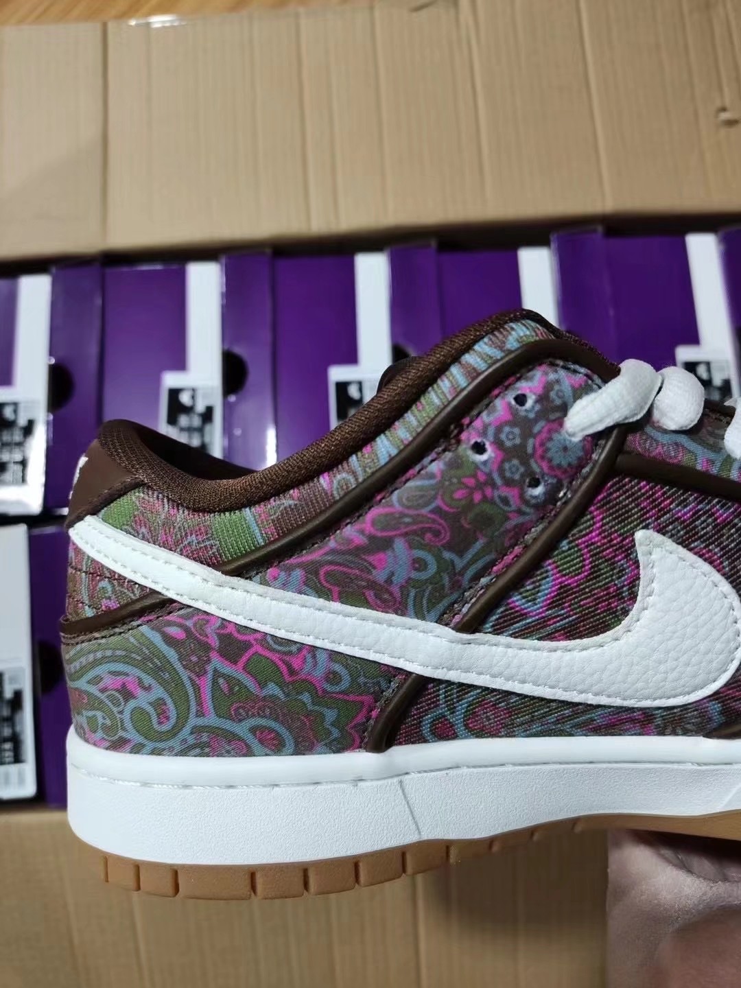 Inspired by the '70s, the NIKE SB Dunk Low "Paisley" is covered in a large pattern that resembles a giant comma, also known as the cashew flower.