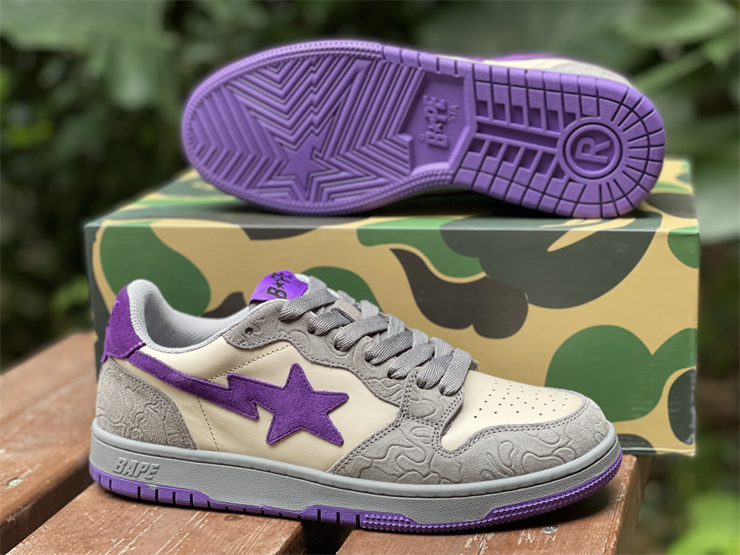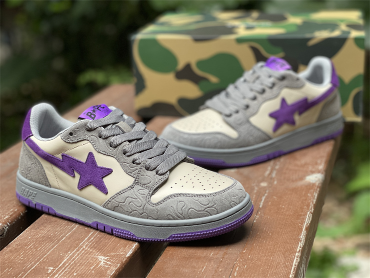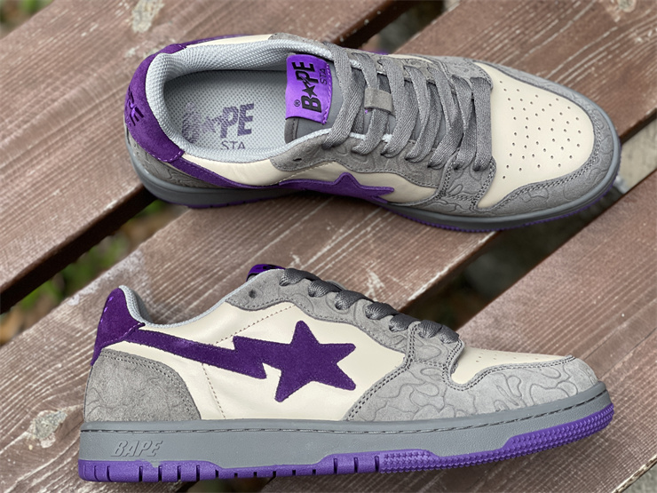 This year, BAPE STA continues to launch new color schemes. The upper is printed with camouflage patterns, and the overall shape follows the classic design of BAPE STA. The iconic five-pointed star Logo on the side retains the traditional appearance and enhances the aesthetics. The tongue is printed with the words BAPE STA to show the identity of the shoe.