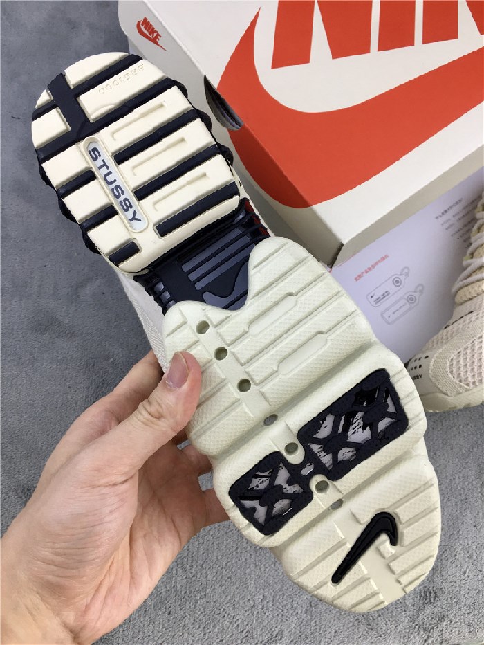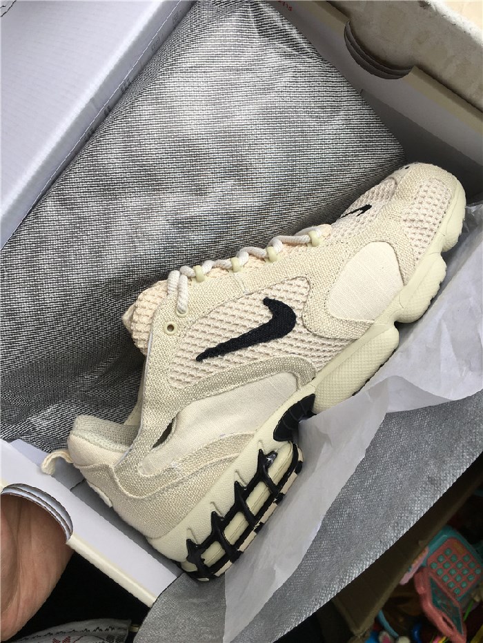 The Stussy x Air Zoom Spiridon Caged 2 'Fossil' released as part of a collaboration between Stussy and Nike. The shoe's upper is built with a mix of mesh and textile, finished in Fossil and contrasted by black branding.