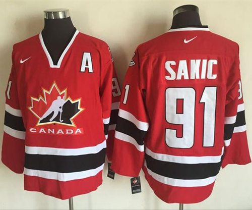 Team CA. #91 Joe Sakic Red/Black 2002 Olympic Nike Throwback Stitched NHL Jersey