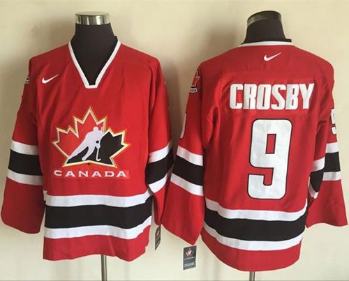 Team CA. #9 Sidney Crosby Red/Black 2002 Olympic Nike Throwback Stitched NHL Jersey