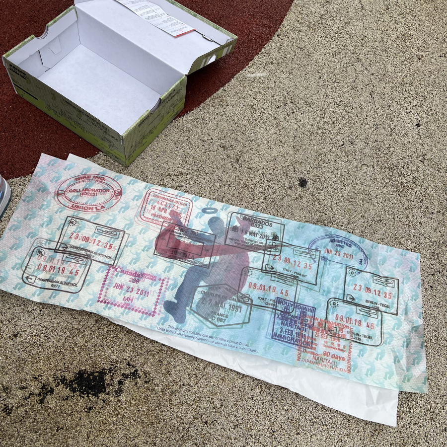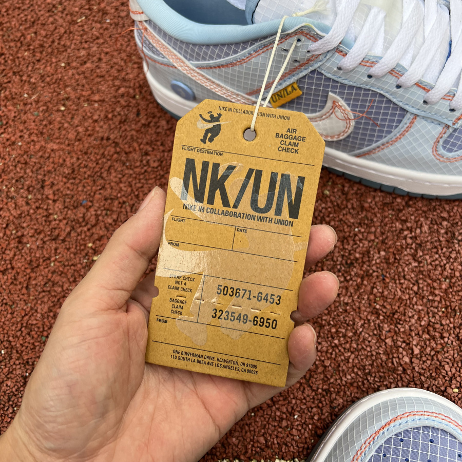 Other details include the signature UN/LA label on the midfoot, a halo man on the lateral ankle button, and a start display on the forefoot on the outsole. Each pair comes with a hang tag, which looks like a baggage claim tag, in a special boarding pass-themed package.