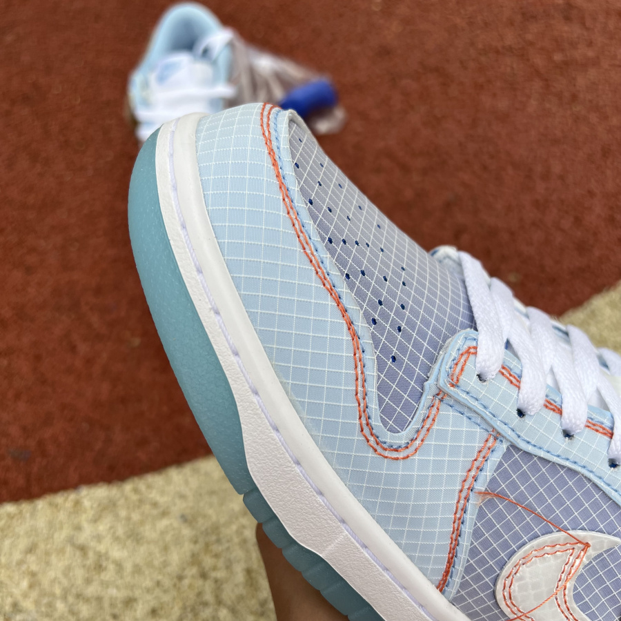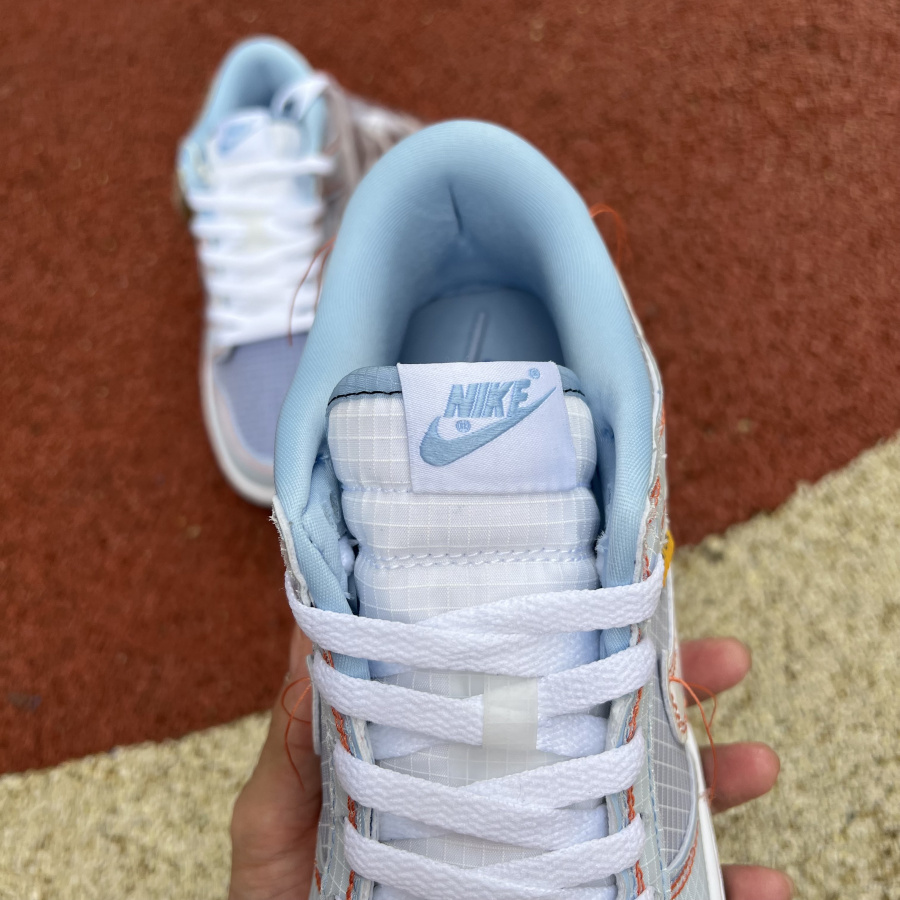 This Nike Dunk Low collaboration will be available in two color options. Both feature a mesh, ripstop-like texture on a white midsole and translucent outsole.