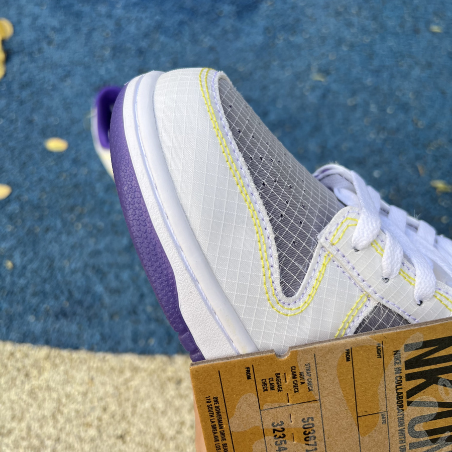 Union and Nike have decided to bring the new Union x Nike Dunk Low. Following the exposure of the previous two color schemes, the upper uses a translucent mesh surface of cicada wings to replace the traditional leather material. The checkered texture is full of the upper, and the overall color is purple. With green as the main tone, the Swoosh on the side of the shoe body is silver and white, which should be made of 3M reflective material.