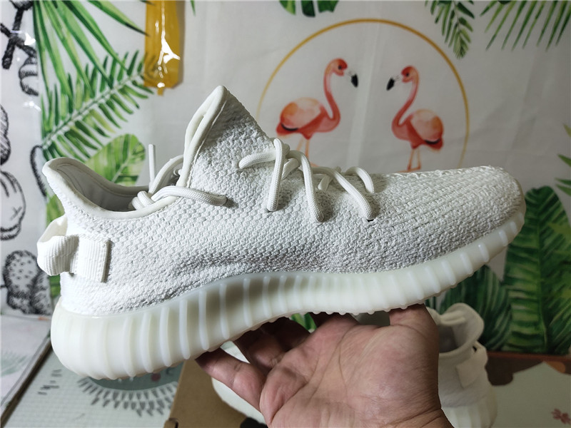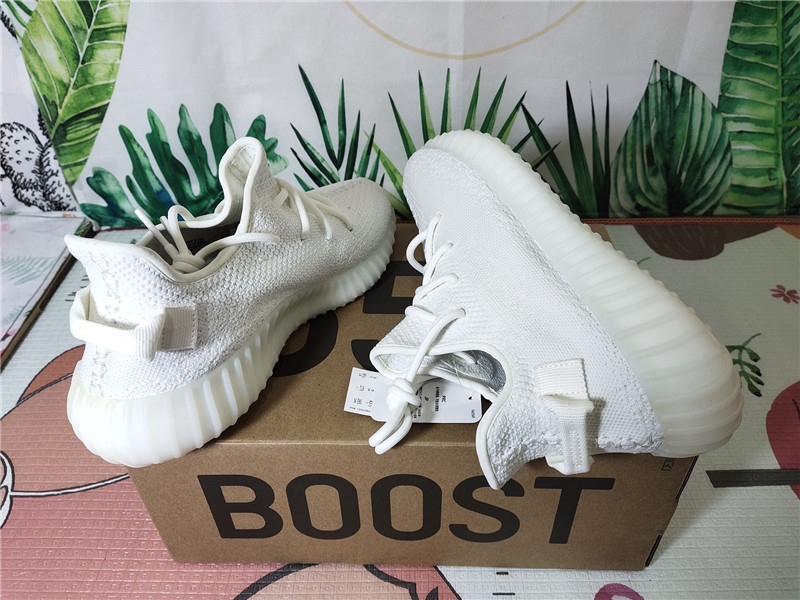 This pair of Yeezy 350 Boost V2 "Triple White" runs through all white, with a creamy white outsole and a white Primeknit woven upper. The paint strips on the heel heel and the shoe body still exist, and these details have not been lost in the refreshing atmosphere of pure white.