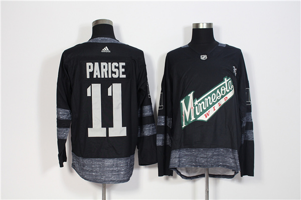 Men's Adidas Minnesota Wild #11 Zach Parise Black 1917-2017 100th Anniversary Stitched NHL Jersey