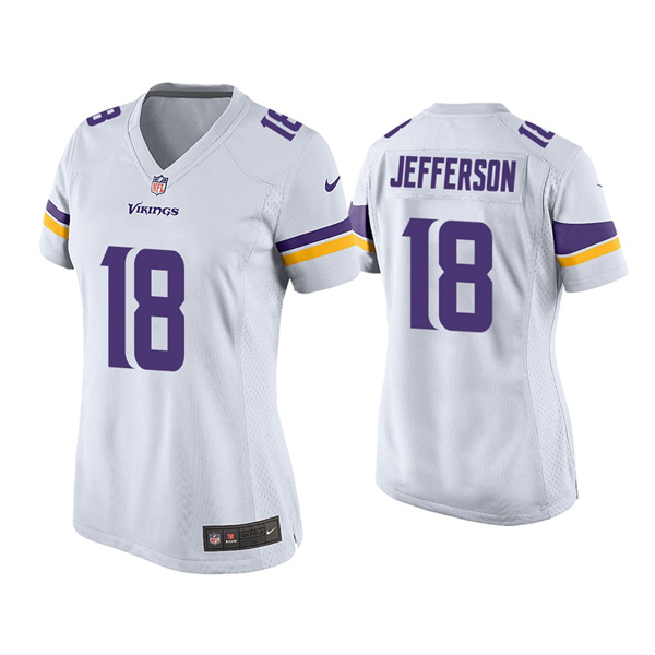Women's Minnesota Vikings #18 Justin Jefferson White Stitched Jersey(Run Small)