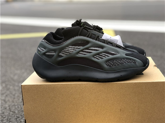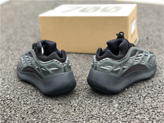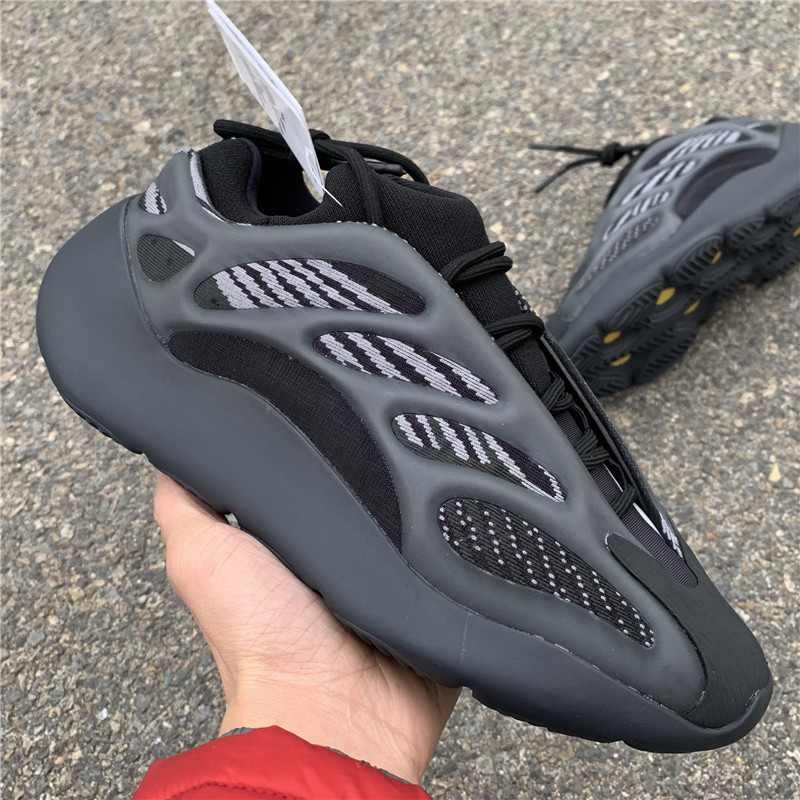 The Yeezy 700 V3 'Alvah' delivers a stealthy colorway of Kanye West’s sculpted silhouette. A black and grey mesh upper is fortified with glow-in-the-dark RPU overlays for structural support.