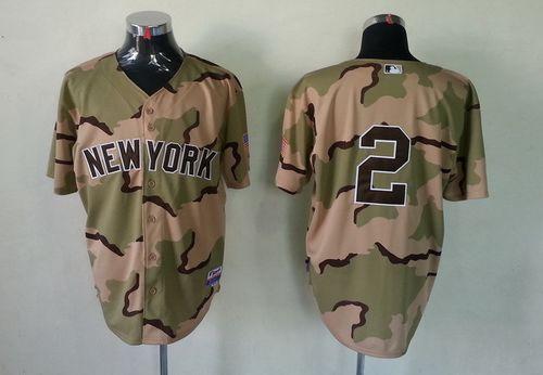 Yankees #2 Derek Jeter Camo Commemorative Military Day Cool Base Stitched MLB Jersey