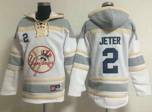 Yankees #2 Derek Jeter White Sawyer Hooded Sweatshirt MLB Hoodie