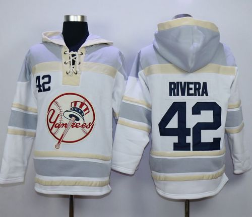 Yankees #42 Mariano Rivera White Sawyer Hooded Sweatshirt MLB Hoodie