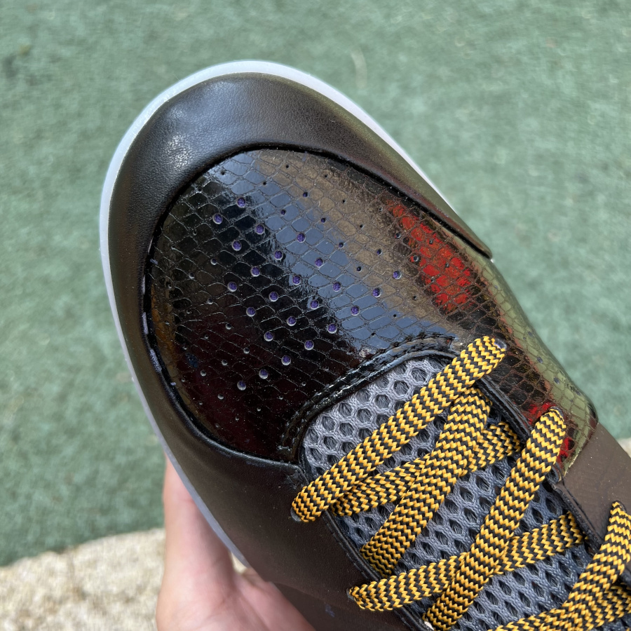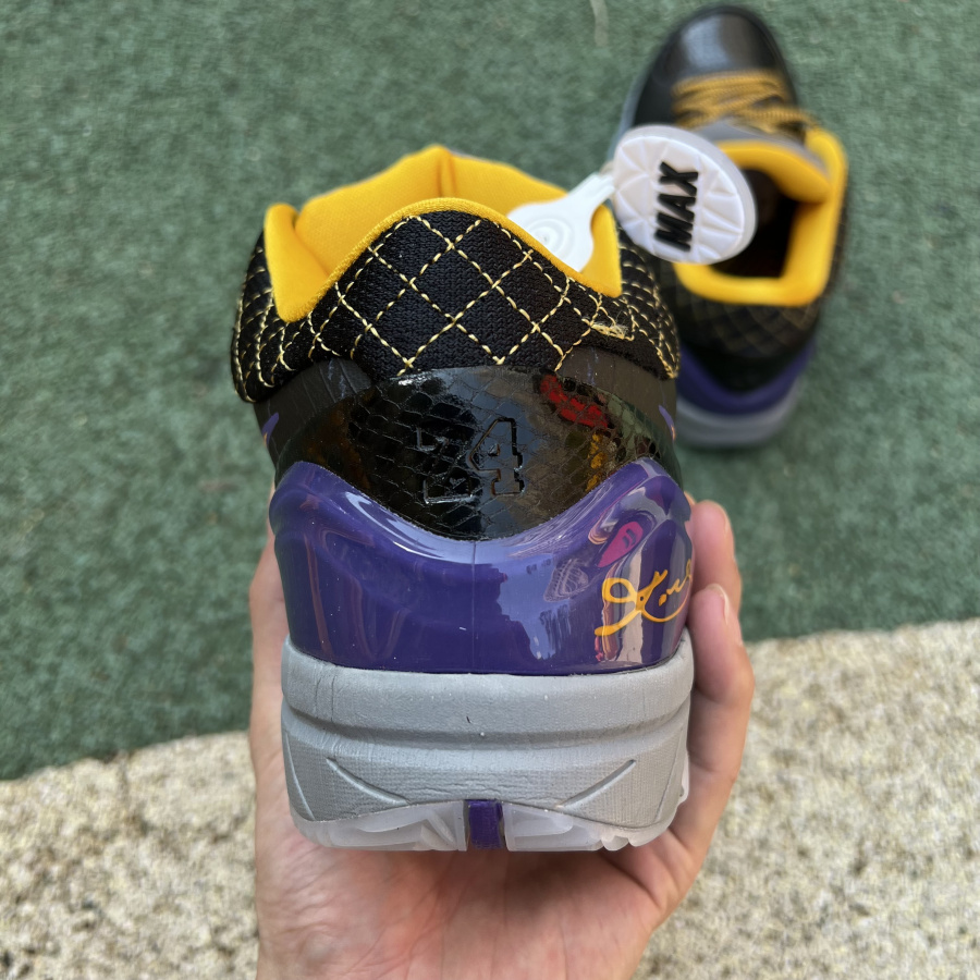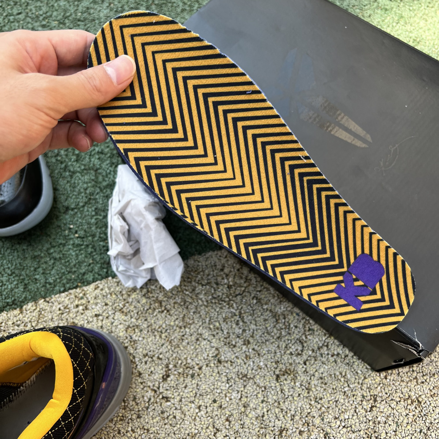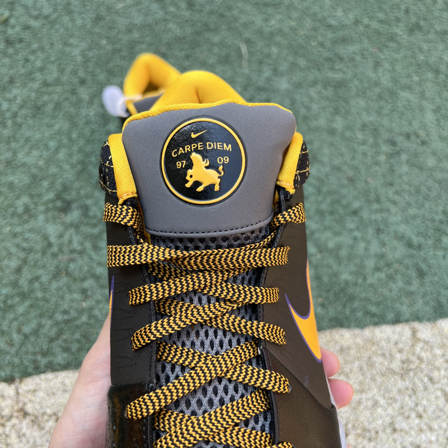 Layer dynamic Flywire technology, fly wire design on the side and gold check design on the upper. Kobe's motto in Latin, Carpe Diem, means to live every day in the present. Recalling the Purple and Gold Dynasty of the year, the dazzling purple heel is complemented by yellow Swoosh embellishments.